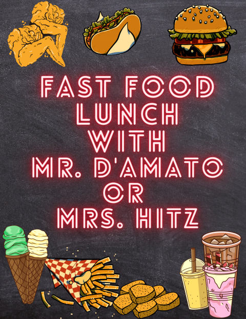 Top 5 earners in the school will get a Fast Food Lunch with Mr. D’Amato or Mrs. Hitz!