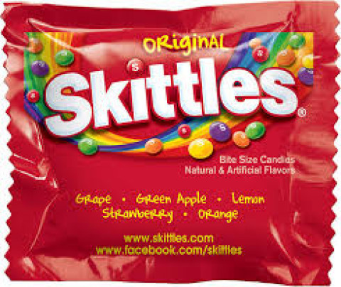 Snack size bag of Skittles / Taste the Rainbow!