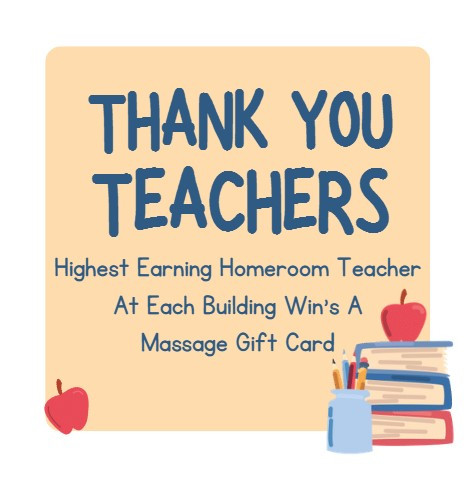 Highest Earning Homeroom Teacher at Each School Win's a Massage Gift Card to Mainland Wellness Center