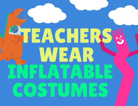 School-wide Goal: $7,500 Raised - Teachers wear Inflatable Costumes to Morning Drop Off