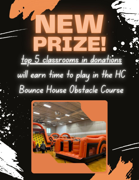 The top 5 classrooms in donations will earn time to play in the HC Bounce House Obstacle Course!