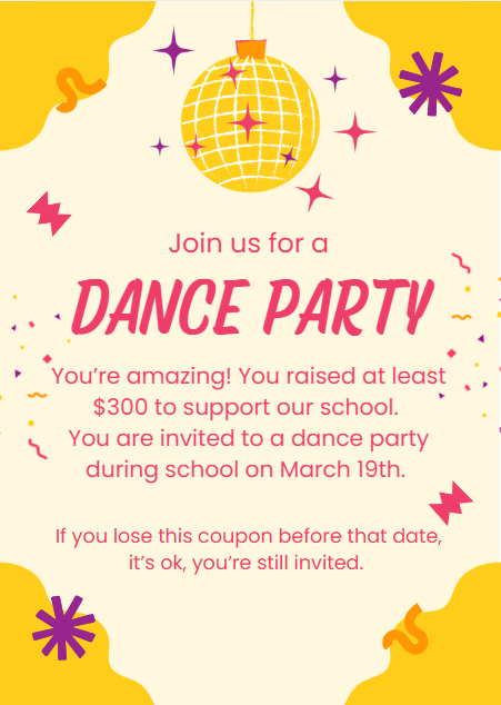 We'll have a dance party during school with treats and glow sticks!