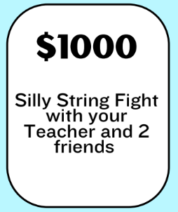 If we reach our goal of $25,000, the top earners from each grade will get to silly string the Assistant Principals!