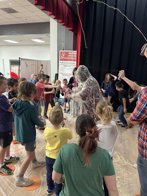 On March 12th Silly String Dr. Rand at our celebration assembly!